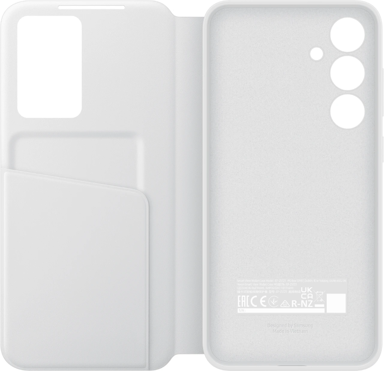 Funktional und sicher im Design – mit dem eleganten Smart View Wallet Case kannst du direkt auf das Display deines Galaxy S24 FE zugreifen, ohne das Case öffnen zu müssen.